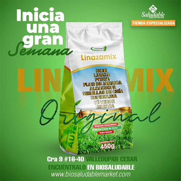 Hecho a base de: Linaza, Te verde, Flor de Jamaica, Alcachofa, Quiebrabarriga y Stevia.